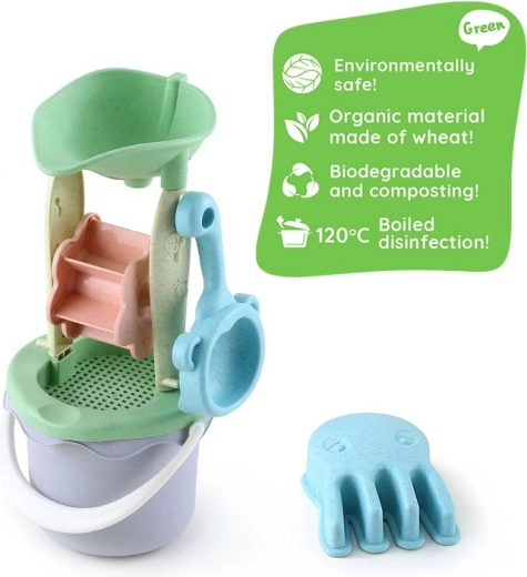 Entdecken Sie umweltfreundlichen Spielspaß mit dem Woopie Green Kinderset. Das Herzstück des Sets ist die Mühle für Sand und Wasser, die sich bei jedem Einfüllen oder Eingießen dreht und das Spiel in eine fesselnde Aktivität verwandelt. Die leichte, robuste Konstruktion und die abgerundeten Formen sorgen für eine sichere und komfortable Nutzung auch für die kleinsten Hände.