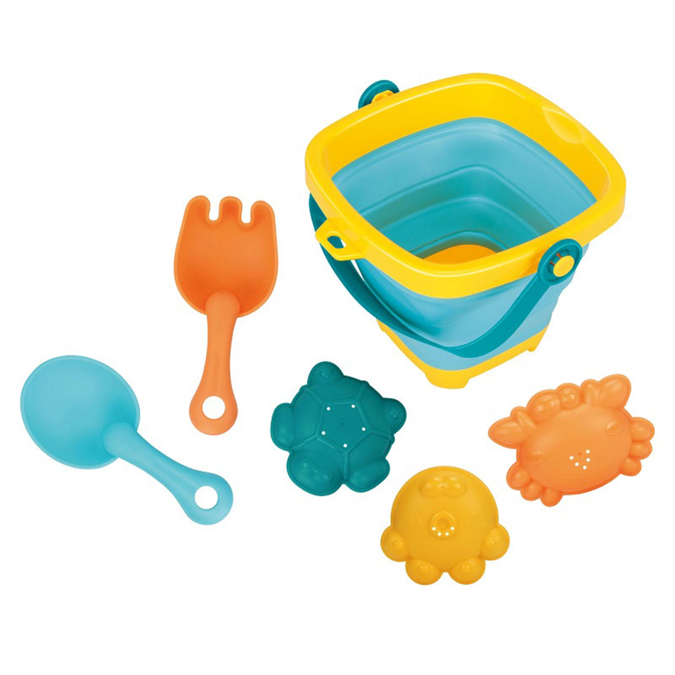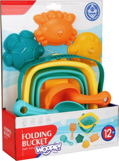 Mit diesem bunten WOOPIE-Set genießen Kinder endlosen Spaß am Wasser und im Sand. Der faltbare Silikoneimer mit Kunststoffrand und -boden lässt sich im Handumdrehen zu einer flachen Form zusammenklappen, sodass er kaum Platz einnimmt und in jede Tasche passt. Die flexiblen Werkzeuge und Förmchen sind widerstandsfähiger gegen Risse und angenehm für kleine Kinderhände.
