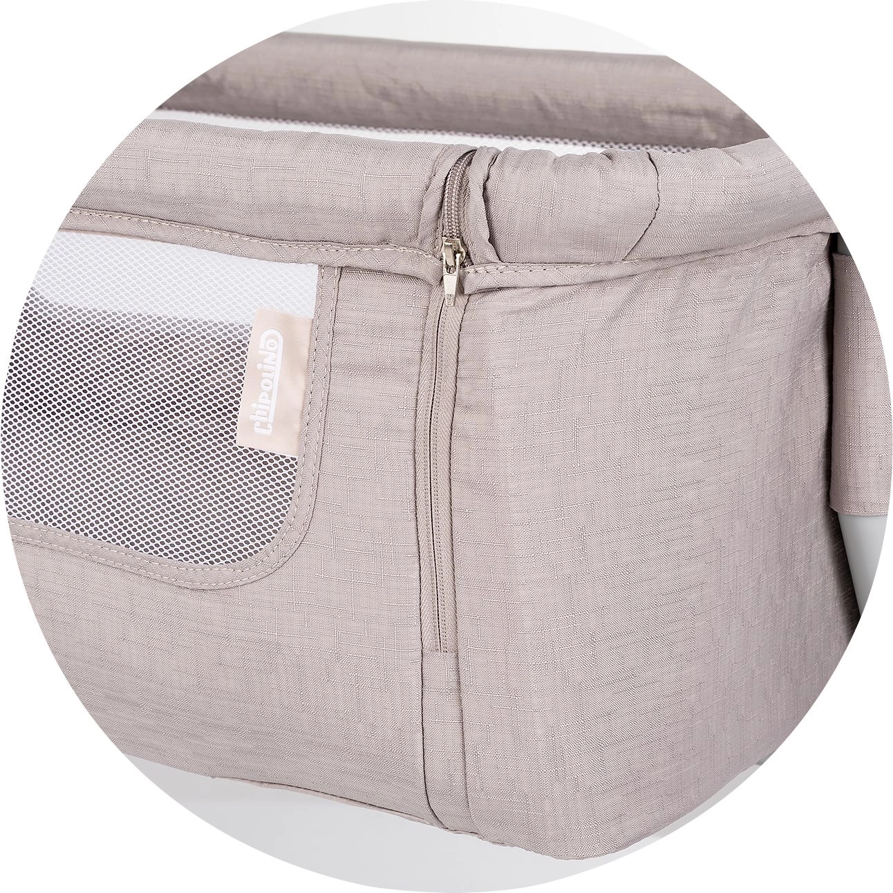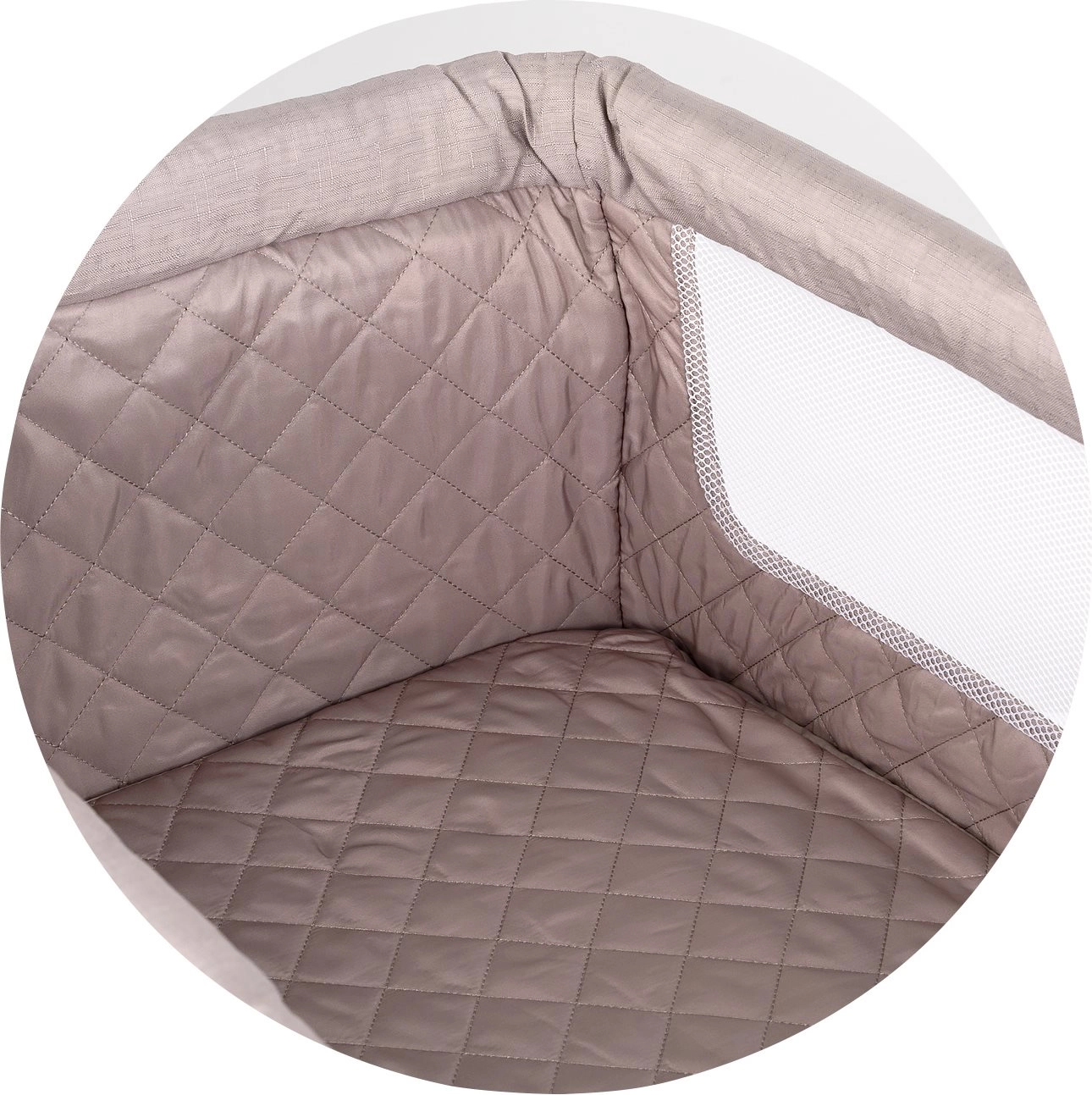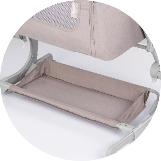 Elegantes Beistellbett am Elternbett, das sich im Handumdrehen in ein eigenständiges Babybett verwandeln lässt. Drei verstellbare Höhen helfen, die Liegefläche perfekt an das Elternbett anzupassen und erleichtern die nächtliche Pflege. Atmungsaktive Mesh-Seiten sorgen für optimale Luftzirkulation und durchgehenden Blickkontakt zum Baby.