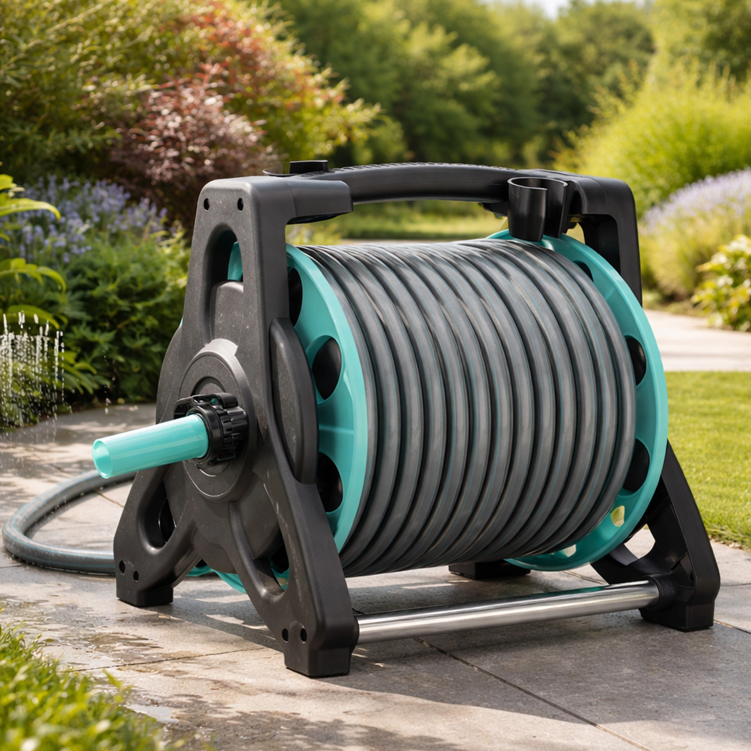 Dieses komplette Bewässerungs-Set kombiniert einen 30-m-Gartenschlauch mit robustem Ständer und Trommel für schnelles Aufwickeln. Dank der kompakten Abmessungen und der klappbaren Kurbel spart es Platz, während der bequeme Transport die Arbeit rund ums Haus und im Garten erleichtert. Die multifunktionale Pistole bietet präzise Durchflusseinstellung von feinem Nebel bis zu stärkerer Dusche.