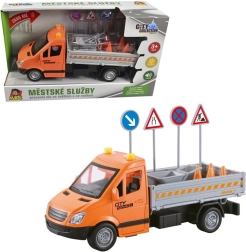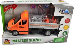 Dieser orangefarbene Lkw mit Ladeplattform und klappbaren Rampen bietet Kindern ein authentisches Erlebnis städtischer Dienste und Straßenarbeiten. Der Schwungradantrieb gewährleistet eine sanfte Fahrt ohne Batterien, während realistische Details und Zubehör die Fantasie sowie die Feinmotorik fördern.