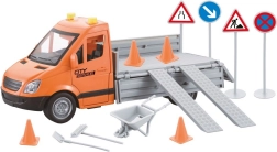 Die Plattform mit klappbaren Rampen ermöglicht einfaches Be- und Entladen des Zubehörs. So können Kinder authentische Straßenarbeiten und Serviceeinsätze nachspielen.