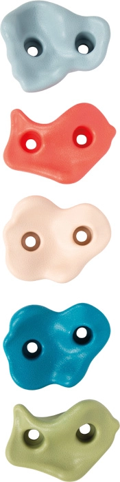 Schaffen Sie für Kinder eine sichere und motivierende Kletterstrecke. Robuste Kunststoffgriffe in modernen Farben verfügen über eine angenehm körnige Oberfläche für einen sicheren Halt auch für kleine Hände. Die 2-Punkt-Befestigung sorgt für Stabilität ohne Verdrehen und ermöglicht eine feste Montage an Holzplatten, Spieltürmen und Gartenwänden.