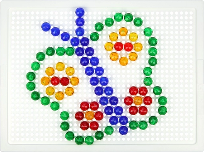 Im Set enthalten sind eine stabile Kunststoff-Steckplatte mit den Maßen 21 × 16 cm und 140 Stecker mit einem Durchmesser von 10 mm – perfekt für Kinderhände. Vorlagen sind nicht enthalten und fördern so ganz natürlich die freie Kreativität und das selbstständige Erfinden von Motiven.