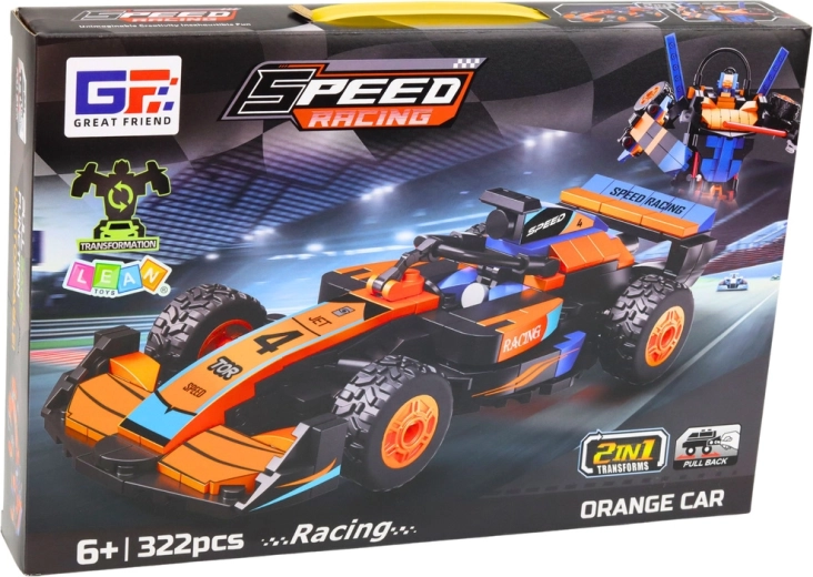 Konstruktionsset 2-in-1: oranges Rennauto und Roboter, 322 Teile