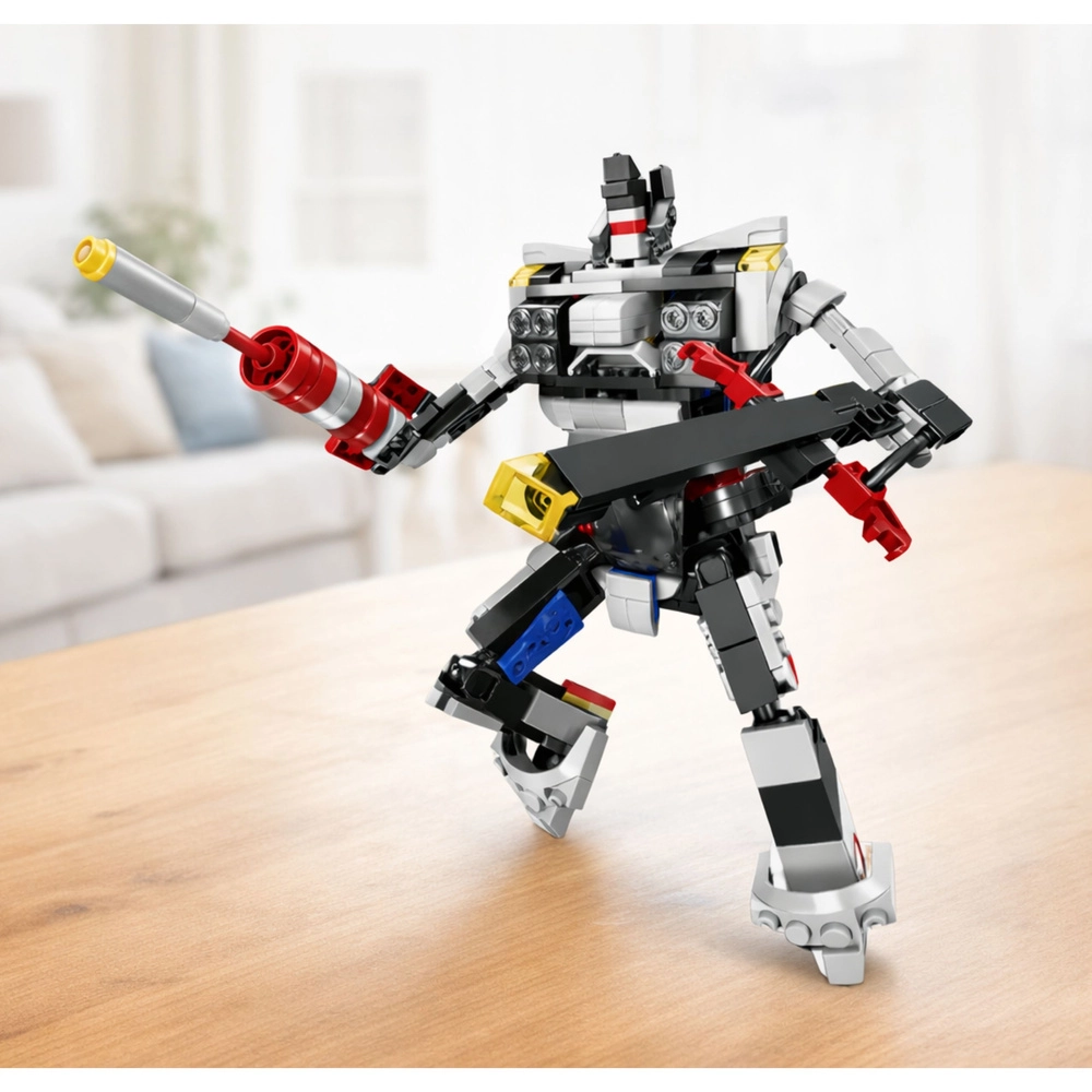 Der Roboter mit Gelenken und Zubehör ermöglicht eindrucksvolle Posen und kreative Geschichten nach dem Zusammenbau.