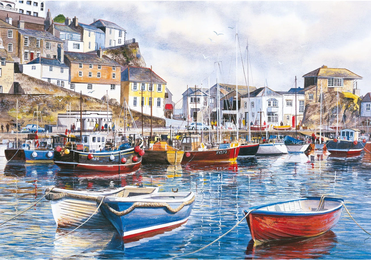 Genießen Sie die Atmosphäre malerischer Szenerien der Küste Cornwalls mit einem Set aus vier hochwertigen GIBSONS Puzzles. Jedes Puzzle hat 500 Teile und erreicht nach dem Zusammensetzen ein Maß von etwa 49 × 34 cm. Dank der beiliegenden Motivvorlagen ist das Puzzeln übersichtlich und macht sowohl Einsteigerinnen und Einsteigern als auch erfahrenen Puzzle-Fans Freude.