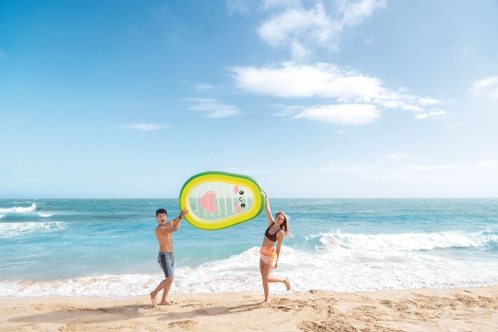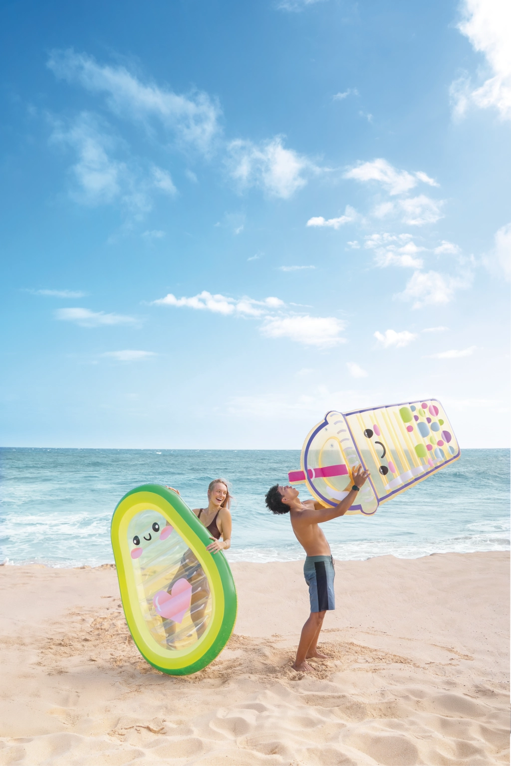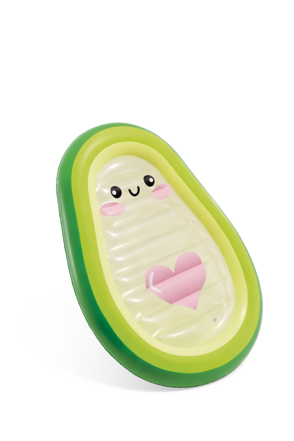 Genießen Sie den Sommer in vollen Zügen mit der verspielten Avocado-Liege, deren transparenter Mittelteil mit einem niedlichen Gesicht und einem rosa Herz begeistert. Aus robustem PVC gefertigt, mit zwei Ventilen für schnelles Auf- und Abpumpen, bietet sie bequemen Liegekomfort und Stabilität auf dem Wasser. Ideal für Pool, Strand und Urlaub – für Erwachsene und ältere Kinder. Erleben Sie die Kombination aus stylischem Design, Komfort und Wasserspaß.