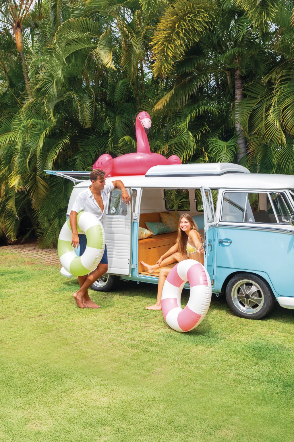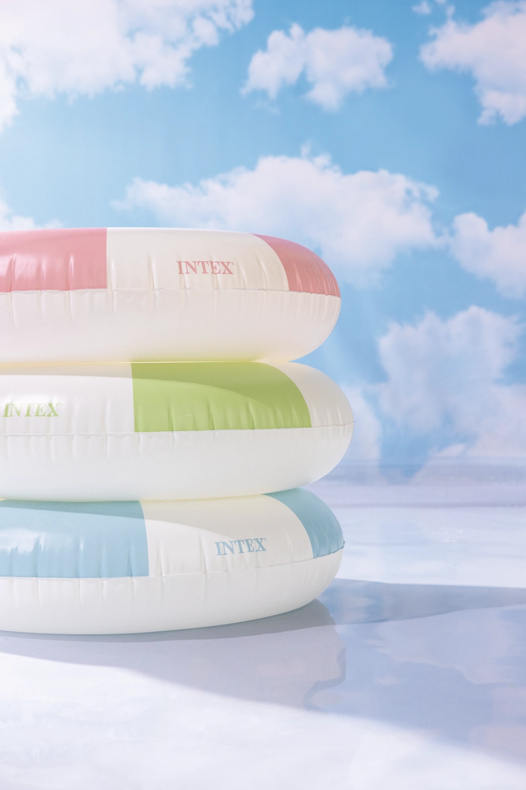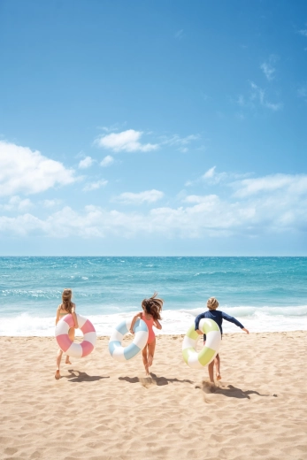 Der aufblasbare Ring Coastal Cabana kombiniert ein frisches Design in Pastelltönen von Blau, Grün und Rosa mit praktischen Funktionen für sicheres und komfortables Badevergnügen. Mit seinem Durchmesser von 91 cm bietet er ausreichend Platz und Komfort für Pool und Meer.