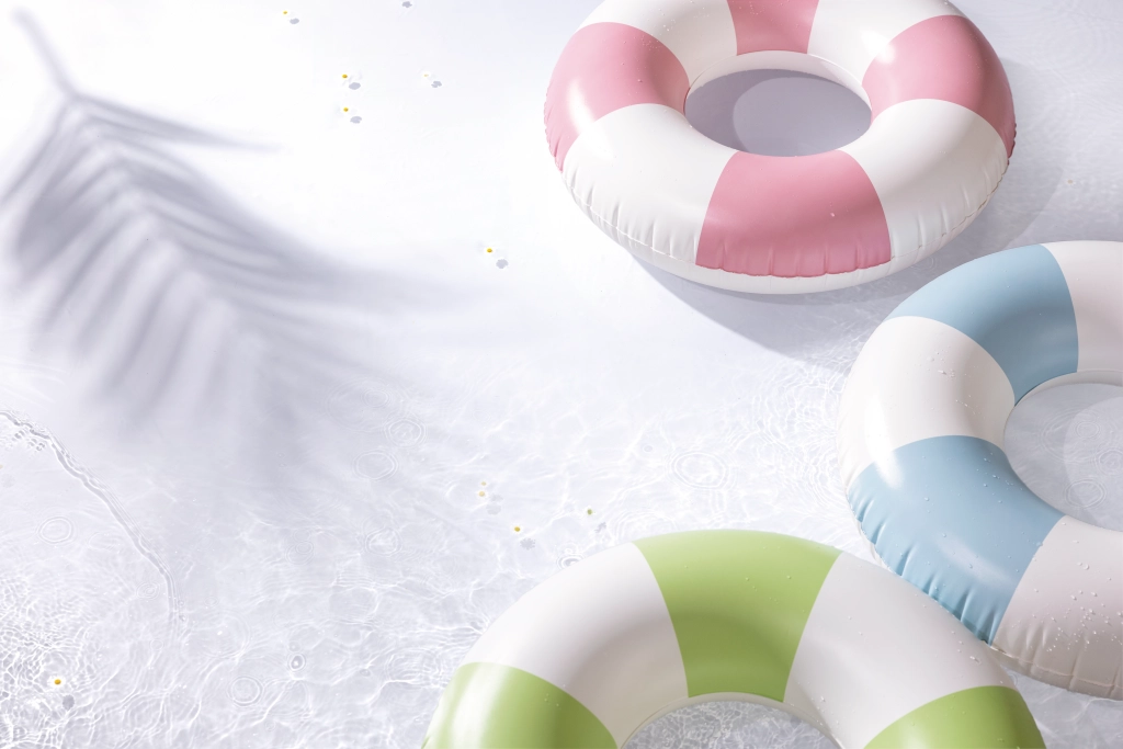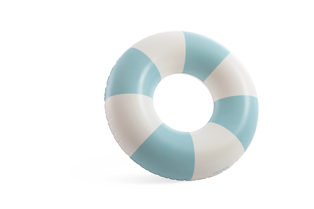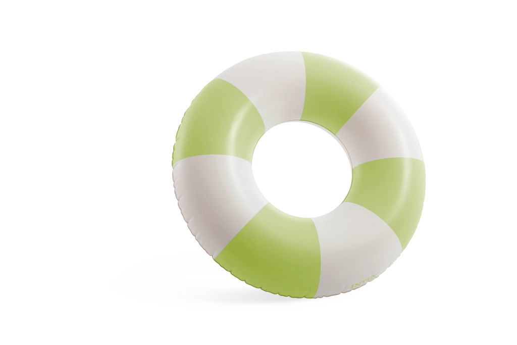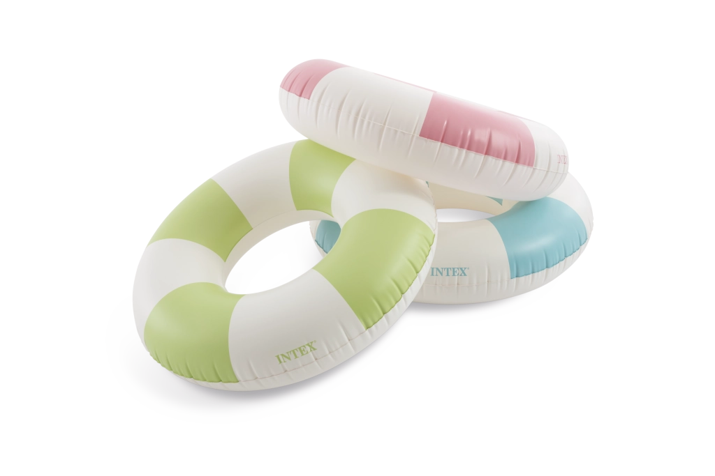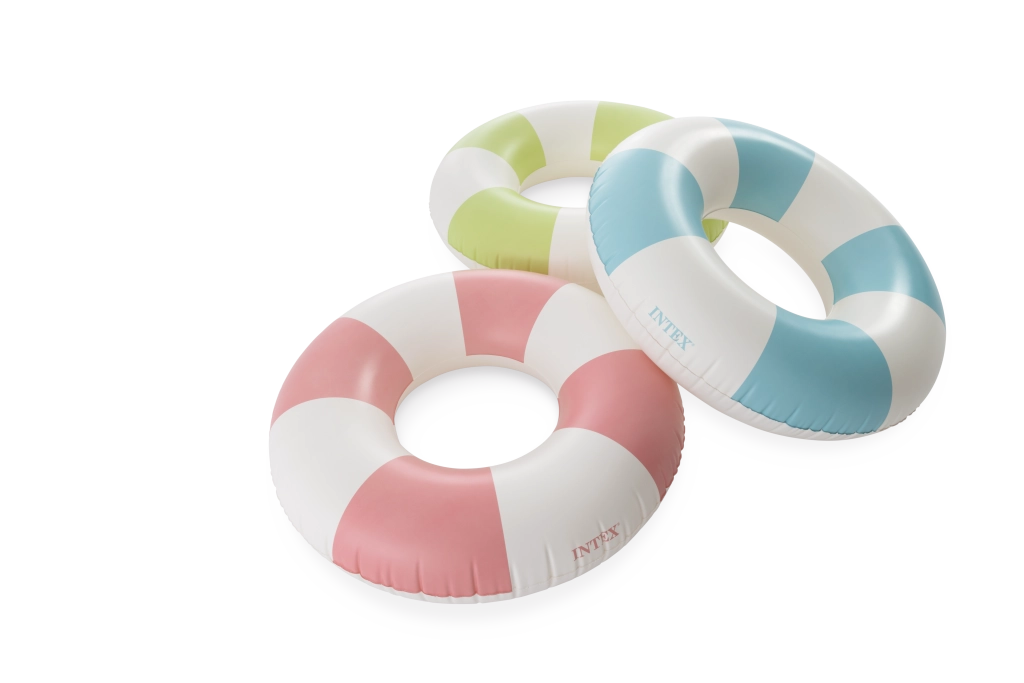 Genießen Sie den Sommer mit dem aufblasbaren Ring Coastal Cabana mit 91 cm Durchmesser – ideal für Pool und Meer. Er bietet stilvolle pastellfarbene Streifen, robustes PVC und schnelles Aufblasen dank praktischem Ventil. Hervorragende Sichtbarkeit im Wasser und bequeme Nutzung für Kinder ab 9 Jahren und jüngere Erwachsene.
