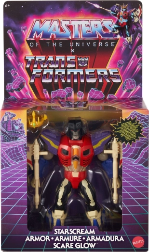 Tauche ein in das epische Crossover zweier legendärer Marken. Scare Glow aus der Reihe Masters of the Universe Origins präsentiert sich hier in einer von der Welt der Transformers inspirierten Rüstung. Dank präziser Verarbeitung, markanter Details und hervorragender Beweglichkeit ist die Figur eine großartige Wahl für Sammler und Kinder ab 6 Jahren.
