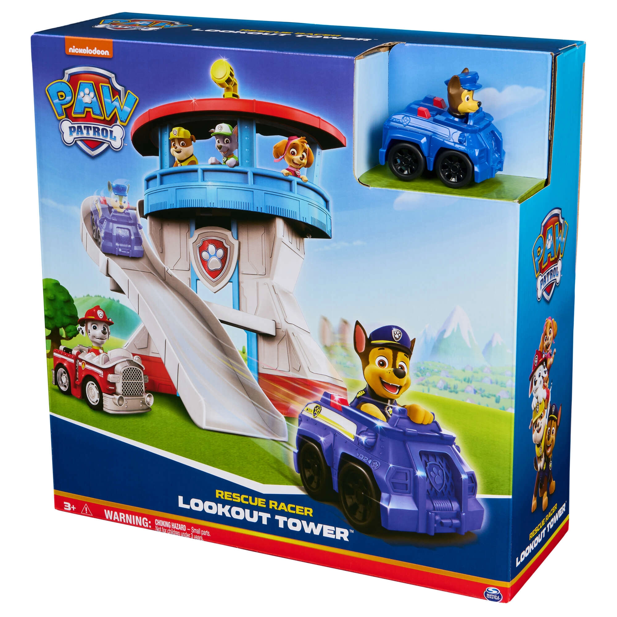 Dieses farbenfrohe Spielset, inspiriert von der Serie Paw Patrol, bietet Kindern eine realistische Basis für ihre Rettungsszenarien. Der Turm ist mit dem ikonischen Hundeabzeichen verziert, oben befindet sich ein drehbares gelbes Periskop, mit dem Chase die Umgebung im Blick behalten kann. Ebenfalls enthalten ist ein kompaktes blaues Auto mit Chase-Figur – bereit für die schnelle Abfahrt über die gebogene Rutsche.
