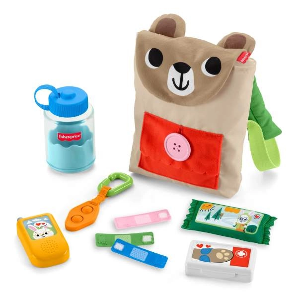 Dieses verspielte Set von Fisher‑Price macht jeden Ausflug zum Abenteuer. Der weiche Bärenrucksack mit Knopftasche, Clip und Schlaufen verbirgt durchdachte Accessoires: eine „Wasserflasche“, ein Kinder‑„Funkgerät/Telefon“, Stoffpflaster mit Klettverschluss, einen Snack und weitere Elemente, die zum Drücken, Öffnen und Schließen einladen. Kinder trainieren Hand‑Auge‑Koordination, Greifen und Geschicklichkeit, während sie Camping und Fürsorge nachspielen.