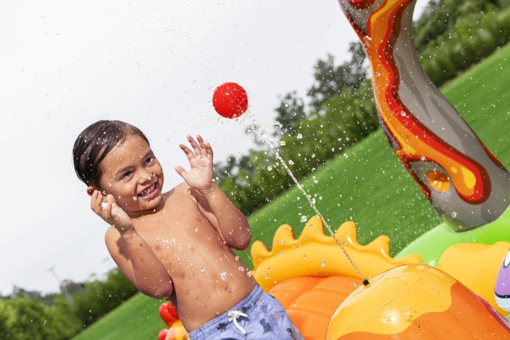 • Wasserspaß: Dusche aus dem Bogen, Wasser-Spielmatte und Rutsche
