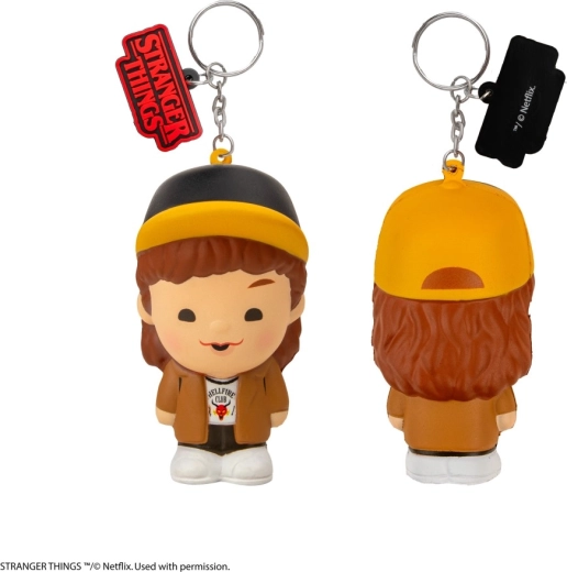 Stilvoller Squishy-Schlüsselanhänger mit der Figur Dustin aus STRANGER THINGS vereint niedriges, süßes Design, antistressiges Drücken und praktische Nutzung. Der weiche Körper fühlt sich angenehm an und die kompakte Größe ermöglicht ein einfaches Befestigen an Schlüsseln, Rucksack oder Federmäppchen.