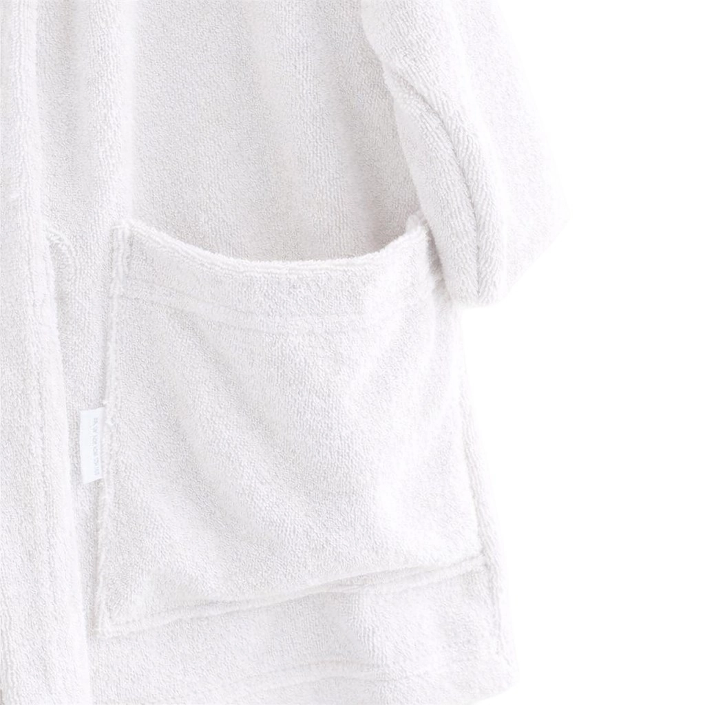 Der Bademantel hat einen eingenähten Gürtel, der nicht verloren geht und beim Gehen nicht stört. Die tieferen Taschen fassen ein Taschentuch, ein kleines Spielzeug oder ein Haargummi. Ein großartiger Begleiter nicht nur fürs Badezimmer, sondern auch nach dem Schwimmen im Pool oder am Meer.