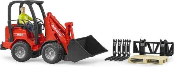 Erleben Sie Spaß mit dem roten Lader Bruder Schäffer 2034, der eine getreue Nachbildung eines echten Laders ist. Er kommt mit einem funktionalen Arm und Zubehör, einschließlich Gabeln und Palette.