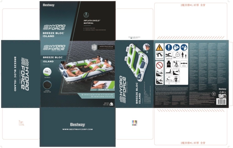 Die widerstandsfähige Inflata‑Shield™-Oberfläche minimiert das Risiko von Rissen und erhöht die Steifigkeit der gesamten Konstruktion. Schnellverschlussventile beschleunigen das Auf- und Ablassen der Luft, während vier integrierte Getränkehalter Ihre Erfrischung stets griffbereit halten. Zwei Clasp ’N Go™-Konnektoren erlauben das Verbinden der Insel mit weiteren Schwimmkörpern und schaffen eine größere Relax‑Zone auf dem Wasser.