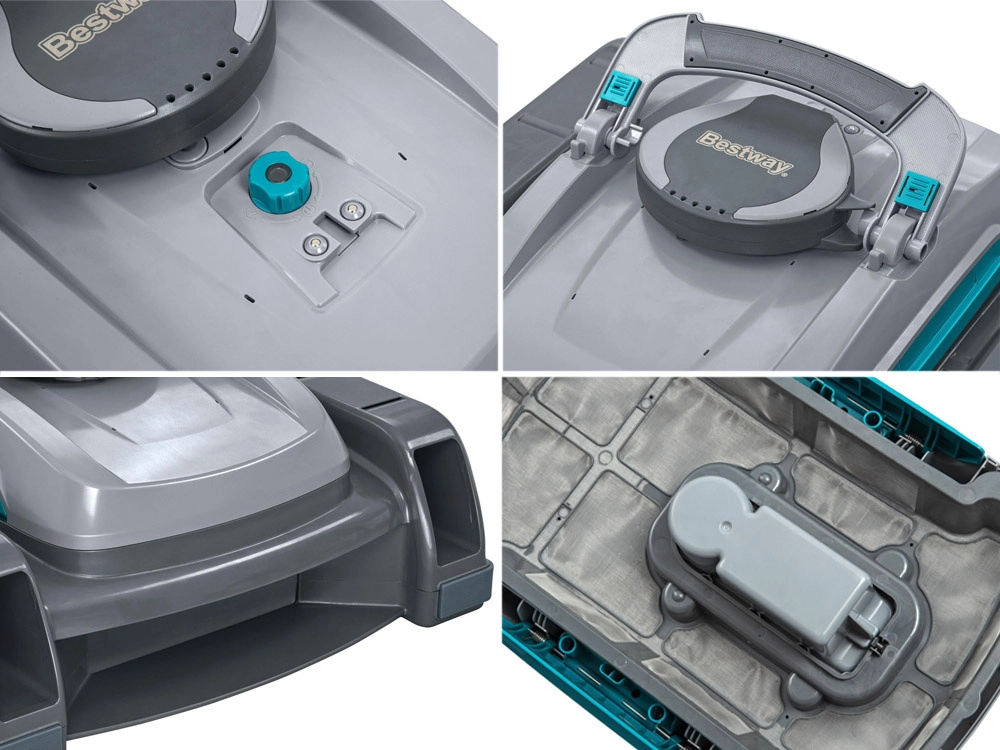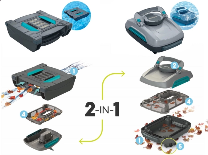 Intelligente Wassersensoren aktivieren den Roboter nach dem Eintauchen und schalten ihn beim Herausnehmen aus dem Wasser ab, wodurch der Motor geschützt wird. Schnelles Laden in 3–4 Stunden und die kabellose Konstruktion bieten maximale Bewegungsfreiheit. Die großvolumigen Körbe fangen Blätter, Sand und Insekten auf und lassen sich dank des von oben zugänglichen Filters leicht reinigen.