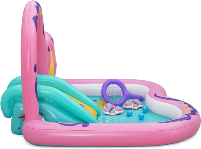Bestway aufblasbares Wasser-Spielcenter Schmetterling 180 × 180 × 117 cm mit Rutsche und Zubehör
