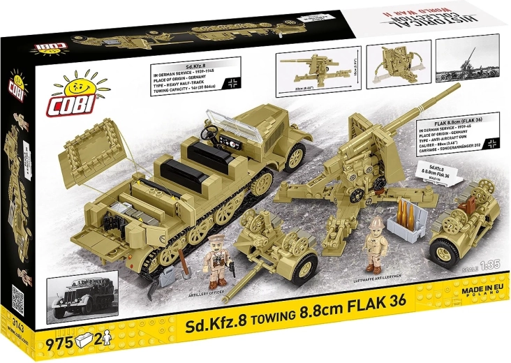 • Authentisches 2-in-1-Set: 8,8 cm Flak 36 auf Anhänger + Halbkettenzugwagen Sd.Kfz. 8