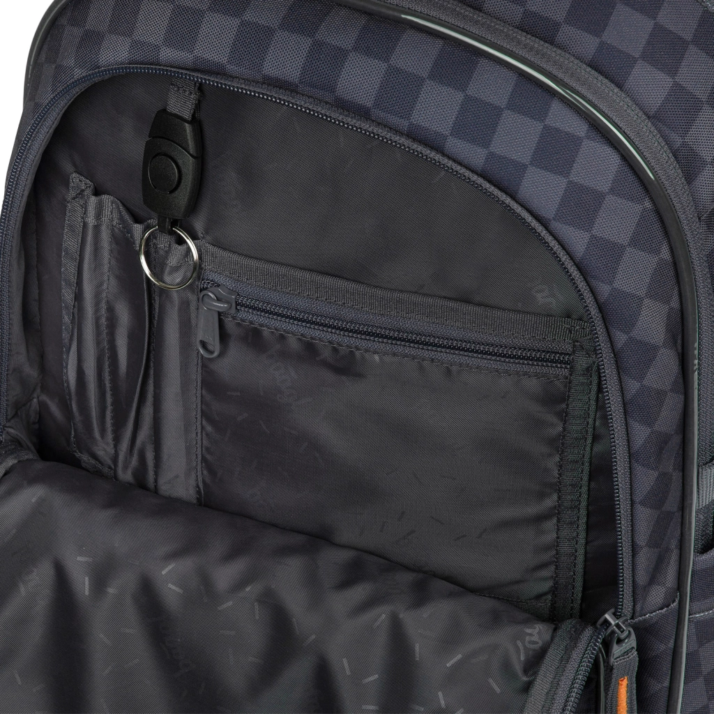 Drei separate Hauptfächer, ein Innenorganizer und ein gepolstertes Laptopfach halten Hefte, Bücher und Elektronik sicher und übersichtlich an ihrem Platz.