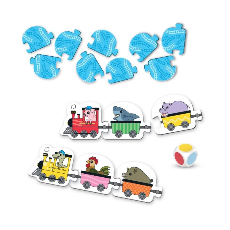 Waggons ankoppeln und ab geht die Fahrt voller Spaß! Der bunte Zug ist ein einfaches Lernspiel für Kinder ab 2 Jahren, das Farberkennung fördert, Tiere vorstellt und die Feinmotorik unterstützt. Würfelt mit dem Farbenwürfel und findet den passenden Waggon – ideal für 1–6 Spieler und die ersten gemeinsamen Spielerunden.