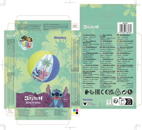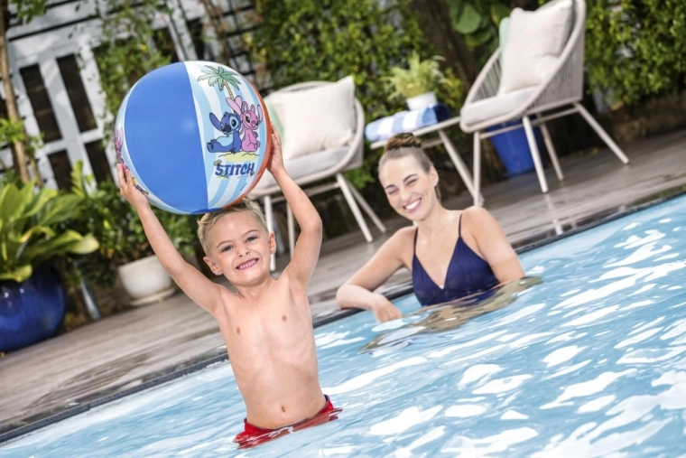 Genießen Sie den Sommer in vollen Zügen mit einem aufblasbaren Strandball mit einem Durchmesser von 51 cm und dem lizenzierten Motiv DISNEY STITCH. Der leichte und robuste Ball aus PVC ist ideal für den Pool, den Strand und den Garten. Bunte Paneele mit Palmen und fröhlichen Grafiken sorgen für hervorragende Sichtbarkeit im Wasser, während das praktische Ventil ein schnelles Auf- und Abpumpen ermöglicht. Geeignet für Kinder ab 2 Jahren.