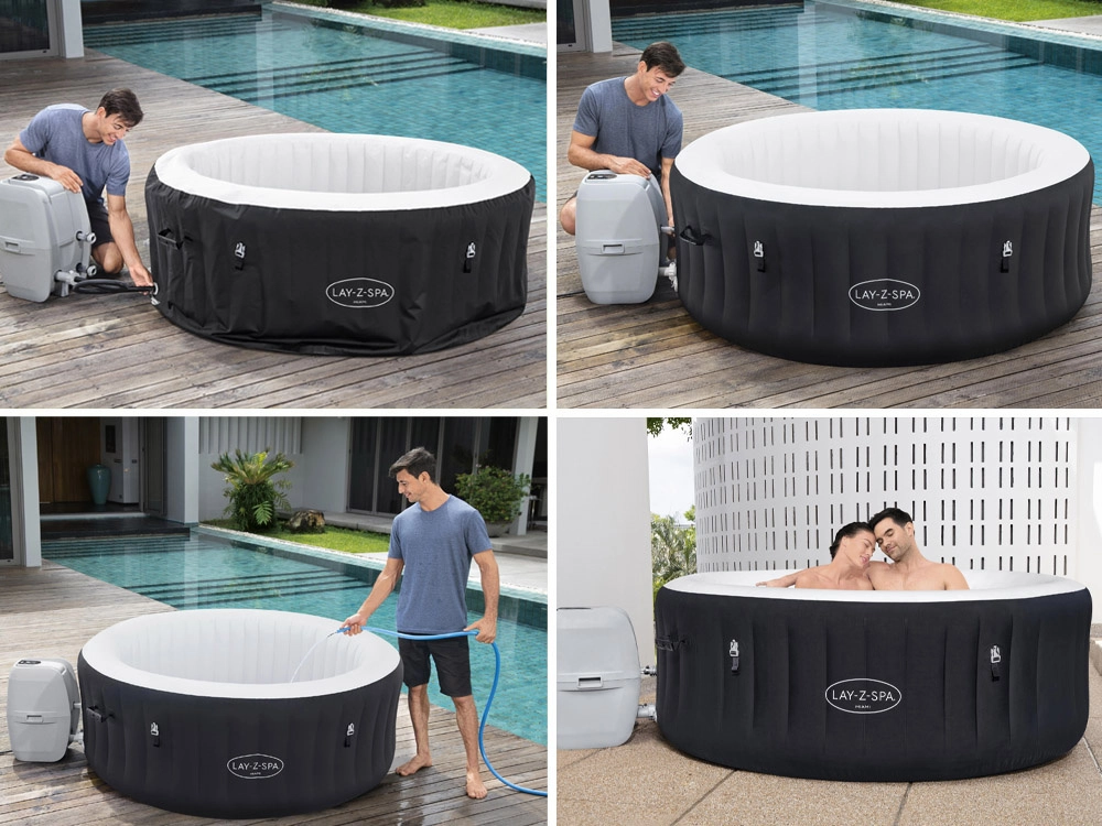 Der Whirlpool ist ideal für Terrasse, Garten und Innenräume – es genügt ein ebener Untergrund. Die praktische isolierende Abdeckplane mit Schnallen hilft, die Temperatur zu halten und schützt das Wasser vor Verunreinigungen. Im Lieferumfang enthalten sind außerdem ein ChemConnect‑Spender für die einfache Wasserpflege und eine Filterkartusche.