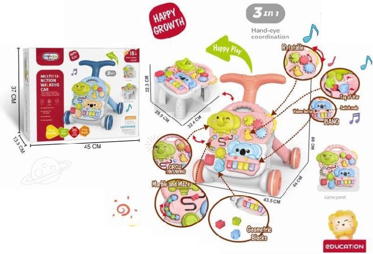 Dieses clevere Spielzeug wächst mit Ihrem Kind – von den ersten Schritten bis zum selbstständigen Entdecken. Das interaktive Panel mit Klavier, drehbaren Rädchen, Perlen auf Schnüren und einer aufklappbaren Muschel vermittelt spielerisch das Unterscheiden von Farben, Formen und Geräuschen und fördert so die kognitive Entwicklung sowie die Feinmotorik. Die verstellbare Griffhöhe und die einfache Montage ermöglichen ein schnelles Umschalten zwischen Lauflern-, Tisch- und Panel-Modus.