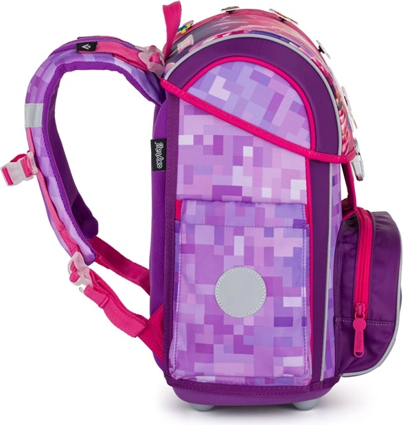 Das Schulset OXYBAG Premium Playworld Girl bietet eine gelungene Kombination aus Komfort, Sicherheit und Stil. Der leichte Rucksack mit anatomisch geformtem Rücken und weich gepolsterten, breiten Trägern sorgt für angenehmes Tragen den ganzen Tag über. Dank reflektierender Elemente ist das Kind besser sichtbar, während der feste, wasserdichte Boden mit Standfüßen den Inhalt vor Feuchtigkeit und Abnutzung schützt.
