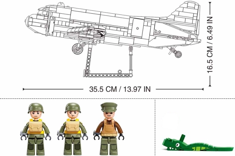 Dieser detailreiche Bausatz bildet das ikonische zweimotorige Transportflugzeug mit breitem Rumpf, ausgearbeiteten Flügeln und authentischen Elementen eines Militärflugzeugs originalgetreu nach. Dank öffnendem Cockpit und hinterem Laderaum lassen sich Luftlandeoperationen und realistische Spielszenarien leicht inszenieren. Drehbare Propeller und das funktionsfähige Fahrwerk verleihen dem Modell Dynamik und eine beeindruckende Präsenz im Regal wie auch beim Spielen.