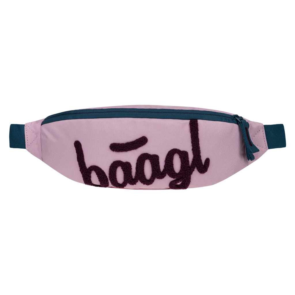 Kompaktes Federmäppchen mit doppelt aufklappbarer Lasche und Fach, faltbare 22-l-Sporttasche, leichte Bauchtasche für Essentials und passende Laptop-Hülle – alles im einheitlichen Rose-Design.