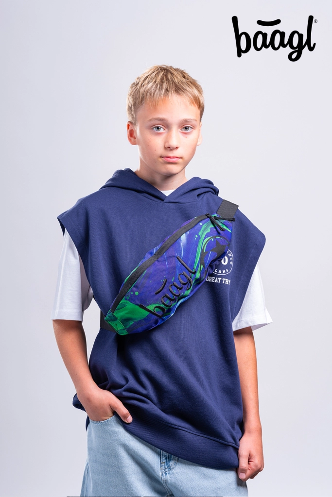 Komplette Schulausstattung in einheitlichem sportlichem Design: Das Set BAAGL CORE FOOTBALL CHAMPION enthält einen leichten ergonomischen Rucksack mit Fach für ein 15"-Notebook, ein geräumiges Federmäppchen, einen praktischen Turnbeutel, eine stylische Bauchtasche und eine robuste Laptophülle. Hergestellt aus recycelten, wasserabweisenden Materialien mit GRS-Zertifizierung, hochwertigen YKK-Reißverschlüssen und reflektierenden Sicherheitselementen.
