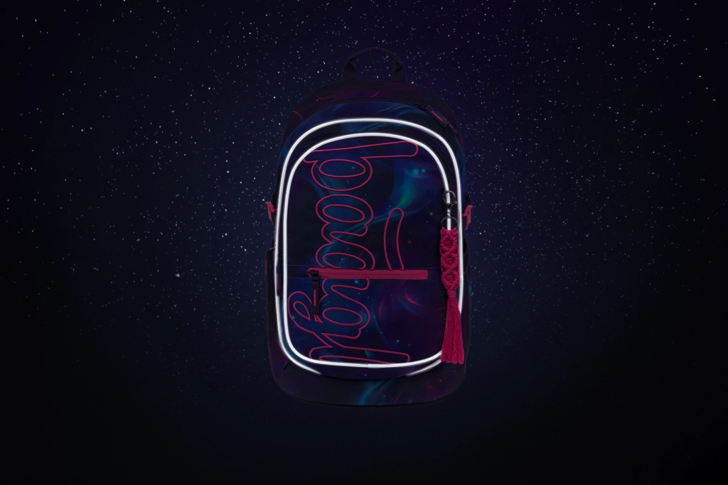 Komplette Schulausstattung in einem Set: leichter Rucksack mit 25 l Volumen (ca. 900 g) mit Dreikammer-Aufteilung, Innenorganizer und Thermofach für Pausenbrote, dazu ein geräumiges Federmäppchen mit Reißverschluss und aufklappbaren Flügeln, Kordelzugbeutel für Sport oder Hausschuhe, praktische Gürteltasche für Kleinigkeiten und eine textile Hülle/Organizer. Alles im attraktiven Weltraumdesign Nova, das Kindern gefällt und dank reflektierender Elemente zudem gut sichtbar ist.