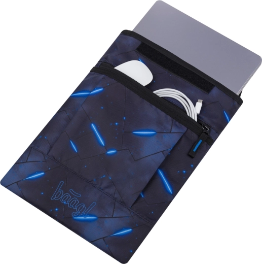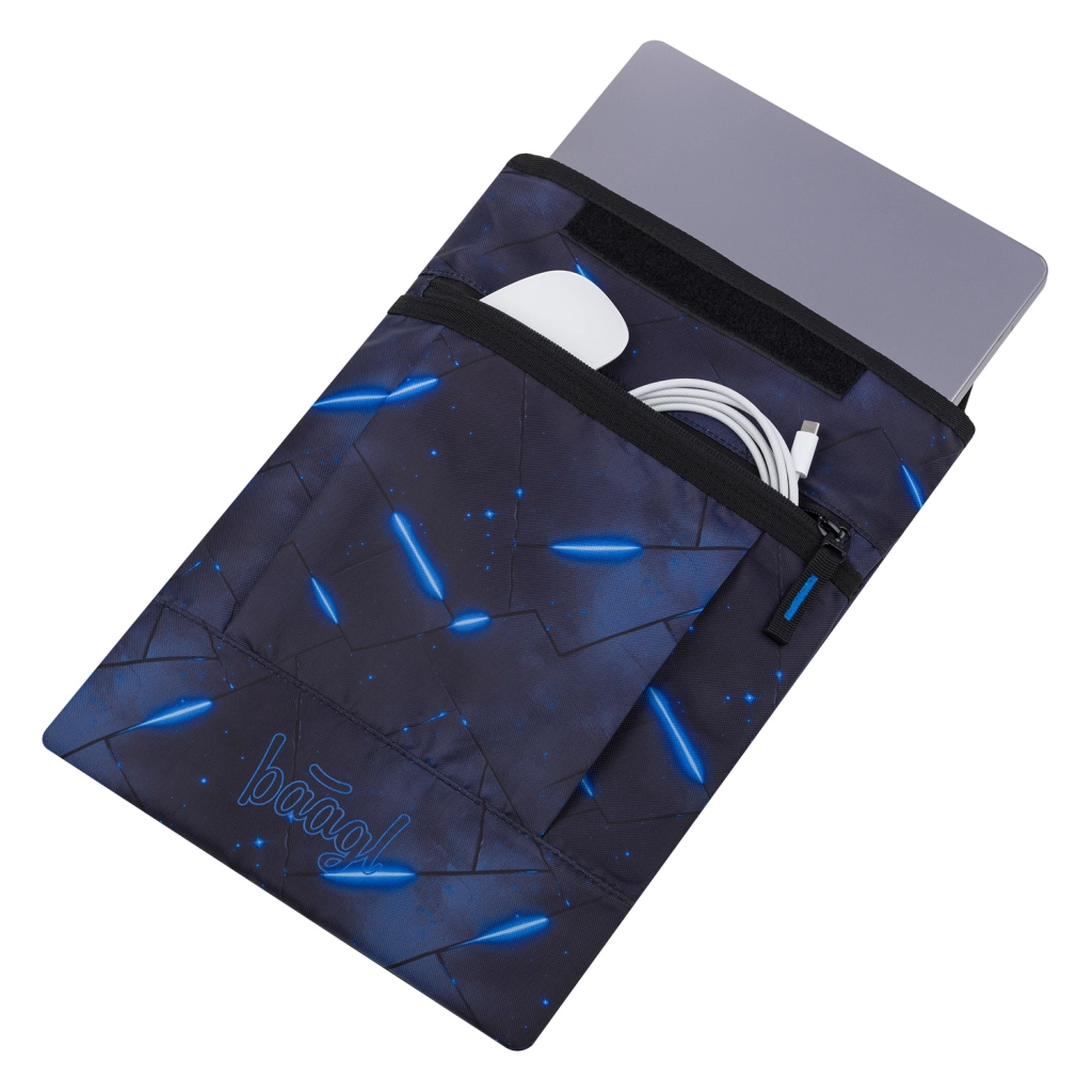 Dank der Auswahl an vielen Motiven lässt sich das Etui leicht mit weiterem BAAGL-Zubehör abstimmen. Die Fronttasche bietet Platz für Ladegerät, Maus oder Kabel – so haben Sie alles praktisch griffbereit. Das Material erfüllt den Global Recycled Standard (GRS), was seine Umweltfreundlichkeit und verantwortungsvolle Herstellung bestätigt.