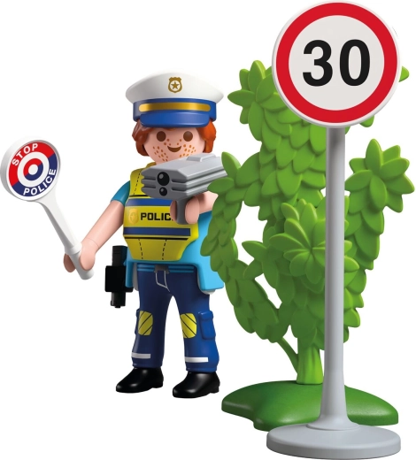 Treten Sie in den Dienst und sorgen Sie mit dem Spielset PLAYMOBIL Special Plus für Sicherheit auf der Straße. Enthält einen Polizisten mit Radar, ein 30 km/h Schild, eine STOP-Kelle und weiteres Zubehör für realistische Verkehrsszenen und kreatives Rollenspiel.