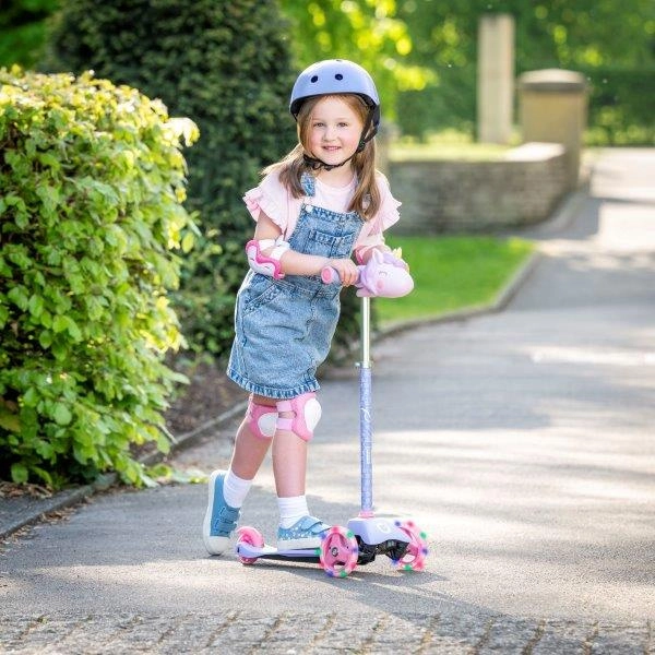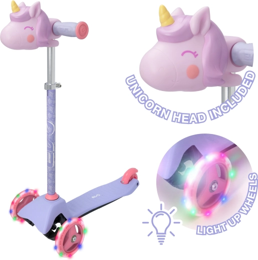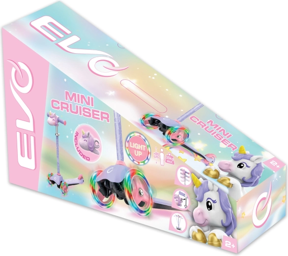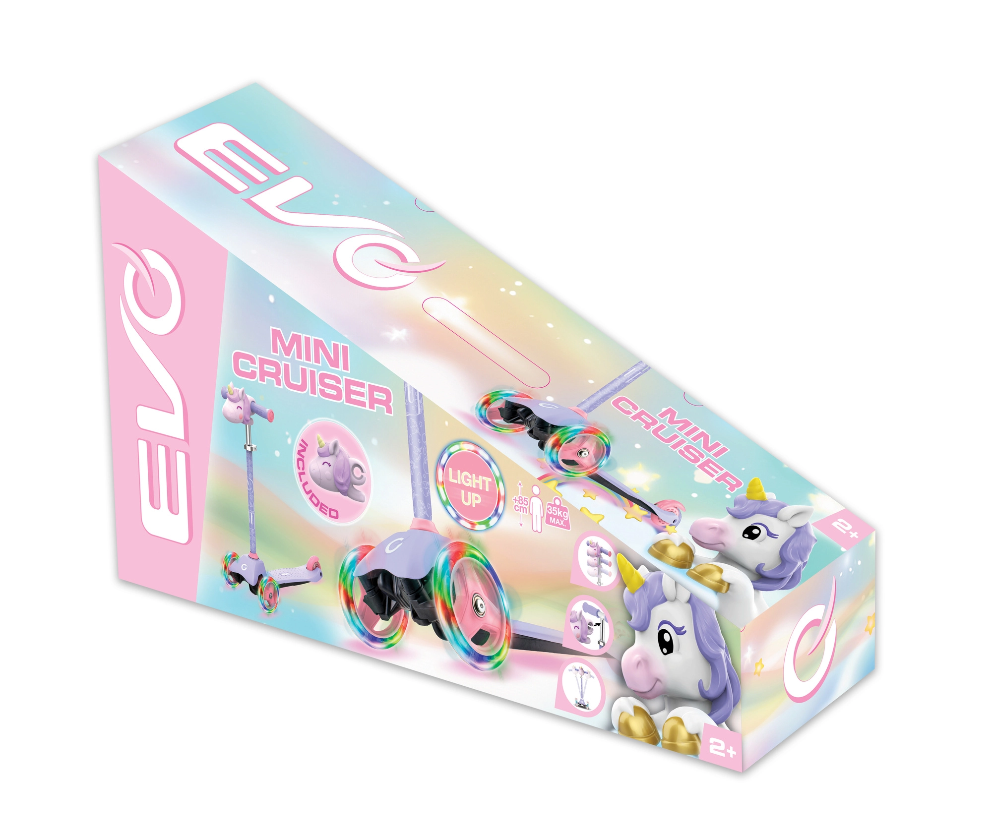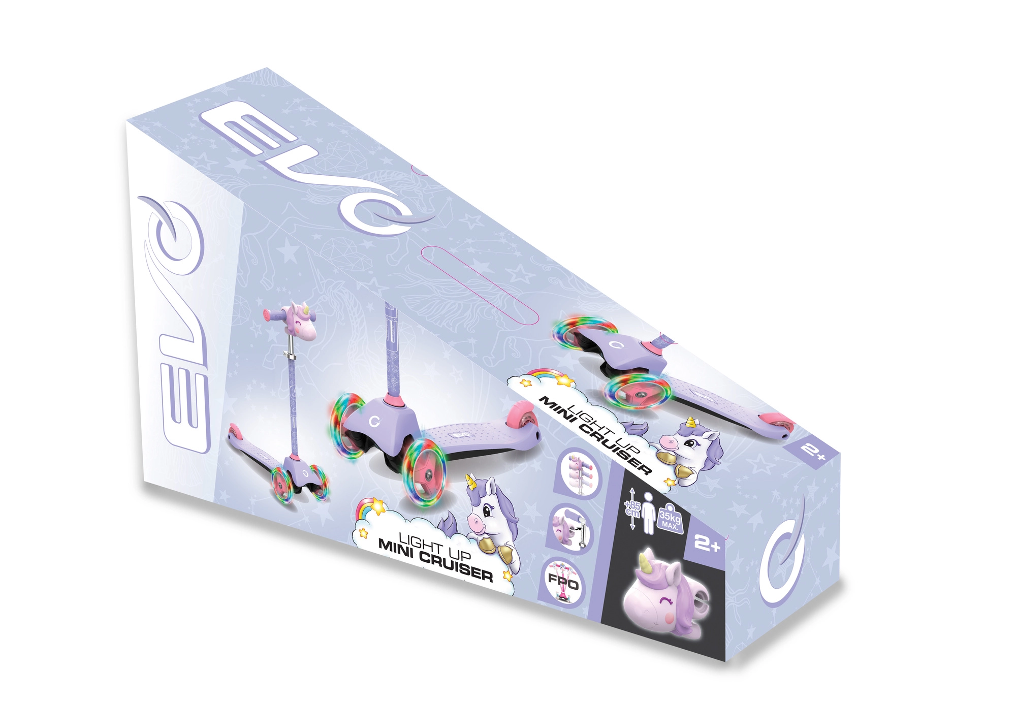 Der EVO Light Up Mini Cruiser ist die ideale Wahl für die ersten Rollerfahrten. Zwei größere Vorderräder und ein Hinterrad bieten hohe Stabilität, während die LED-Beleuchtung in den Vorderrädern jede Ausfahrt in eine unterhaltsame Show verwandelt. Höhenverstellbare T-Bar-Lenker passen Sie leicht an die Größe des Kindes an, die weichen TPR-Griffe rutschen nicht und liegen bequem in der Hand.