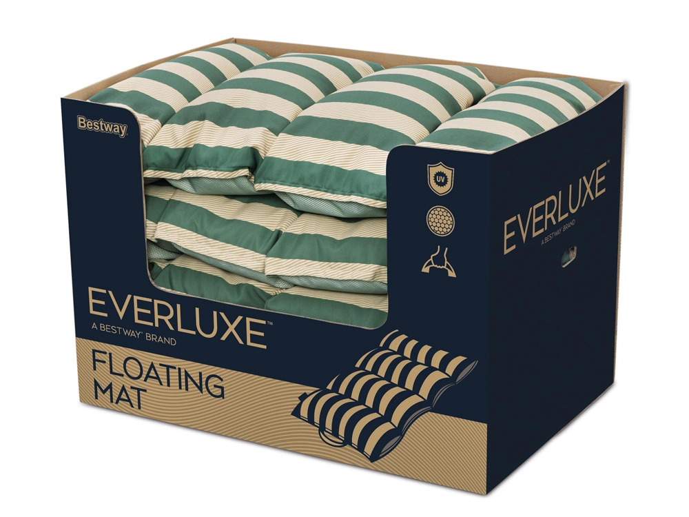 Die Schwimmmatratze Bestway Everluxe ist eine hervorragende Wahl für entspanntes Sonnenbaden und spielerische Erholung auf dem Wasser. Das hochwertige, schnelltrocknende Textil mit UV-Schutz widersteht der Sonne, während die Polystyrolfüllung für hervorragende Auftriebsstabilität und sanften Liegekomfort sorgt. Praktische Nylon-Griffe erleichtern das Tragen und die Handhabung am Wasser.