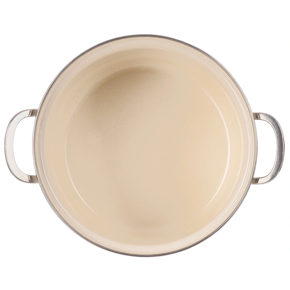 Setzen Sie auf zeitloses Design und Praktikabilität. Dieser cremefarbene Emailletopf Maki ist ideal für den täglichen Einsatz: Kochen, Schmoren und Servieren direkt am Tisch. Robuster emaillierter Stahl gewährleistet eine gleichmäßige Wärmeverteilung und einfache Pflege, während Edelstahlkanten und -griffe die Widerstandsfähigkeit und den Komfort bei der Handhabung erhöhen.