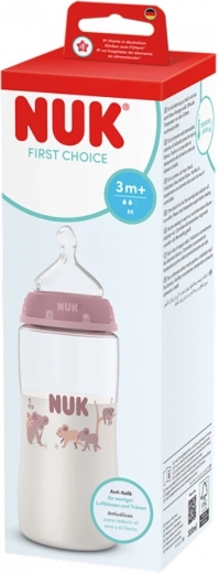 Die NUK First Choice Temperature Control 300 ml ist eine zuverlässige Babyflasche mit einem smarten Temperaturanzeiger, der je nach Wärme des Getränks die Farbe wechselt. Sobald der Inhalt zu heiß ist, wechselt der Indikator zwischen den Skalen von Blau zu Weiß. So können Sie Ihr Baby sicherer und mit mehr Ruhe füttern.
