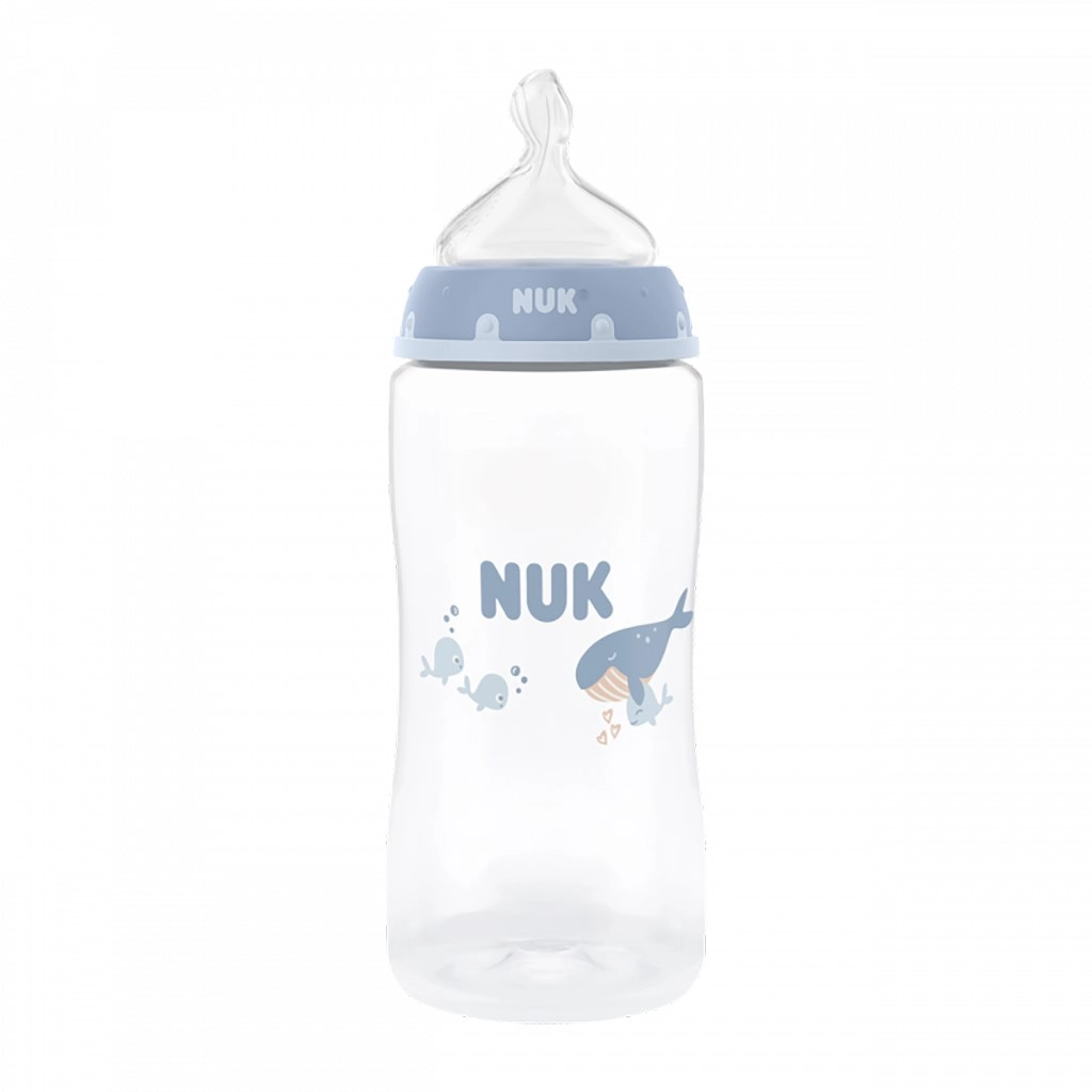 Hergestellt in Deutschland aus hochwertigem, BPA-freiem Polypropylen ist die Flasche leicht, langlebig und angenehm zu halten. Eine breite Standfläche sorgt für Stabilität, der sanft geformte Flaschenkörper erleichtert sicheres Greifen und einfaches Reinigen. Das Design Whale überzeugt mit einem verspielten Look und die Flasche ist vollständig kompatibel mit dem NUK First Choice System für unbegrenzte Kombinationsmöglichkeiten.