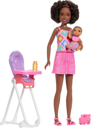 Dieses detailreiche Set bringt alltägliche Momente von Fürsorge und Spiel in die Kinderwelt. Skipper im bunten Top und rosa Rock hilft beim Füttern des Babys im freistehenden Hochstuhl mit abnehmbarem Tablett. Dank realistischer Accessoires trainieren Kinder ihre Feinmotorik und entwickeln Empathie beim Spielen der Babysitter-Rolle.