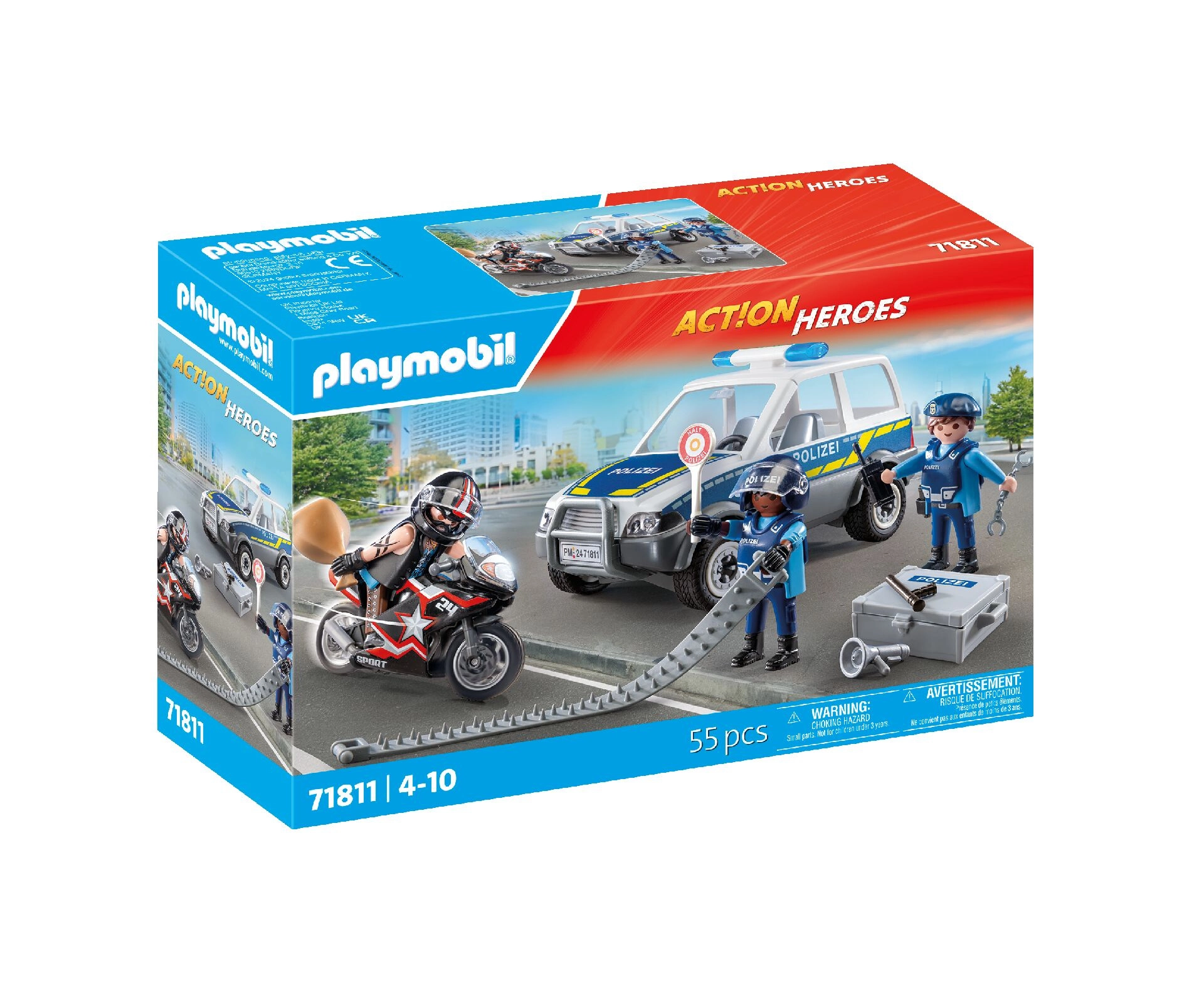 Erwecken Sie die kindliche Fantasie mit dem dynamischen Set PLAYMOBIL City Heroes – Polizeiverfolgung zum Leben. Ein mutiger Polizist nimmt die Verfolgung auf, um den auf dem Motorrad fliehenden Dieb zu fassen, während der Verbrecher in einem coolen Wagen entkommt. Realistische Fahrzeuge, präzise Verarbeitung und bewegliche Figuren garantieren ein fesselndes Spielerlebnis bei jedem Einsatz.
