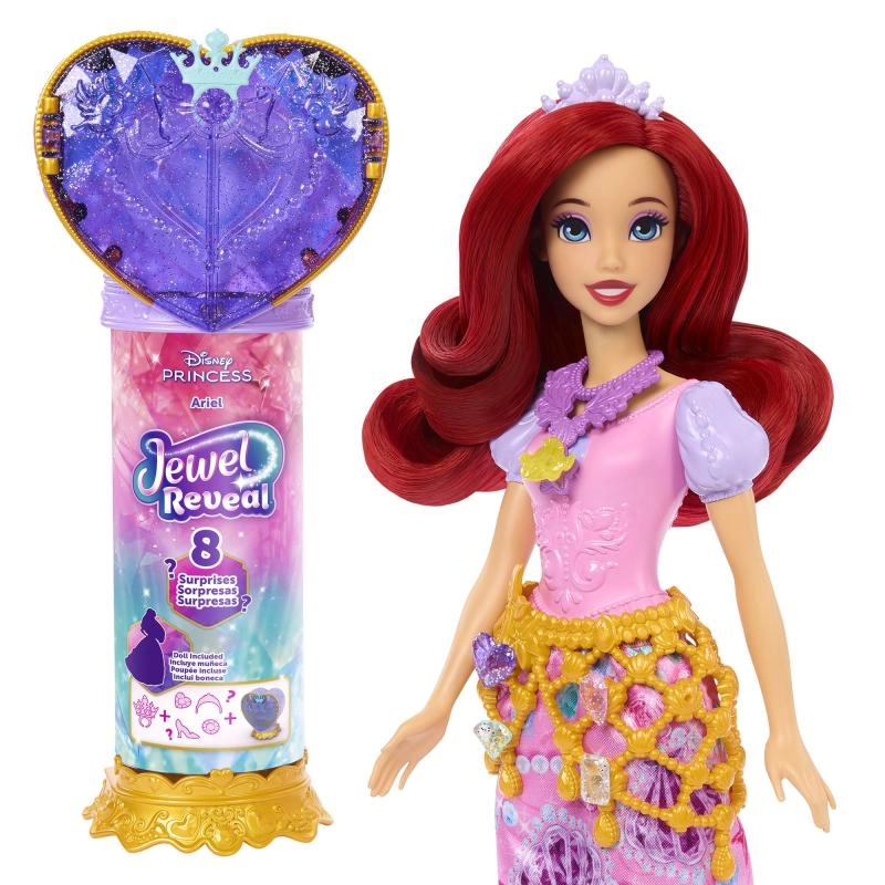 Entdecken Sie magischen Spielspaß mit der Puppe Disney Prinzessin Arielle und ihrem herzförmigen Überraschungspaket! Ziehen Sie den Kinder-Ring aus dem Herzen und enthüllen Sie 8 versteckte Überraschungen – von der Puppe Arielle bis zu Edelsteinen und Accessoires zum Verzieren. Nach dem Auspacken verwandelt sich das Herz in eine königliche Schmuckschatulle zur Aufbewahrung aller Teile.