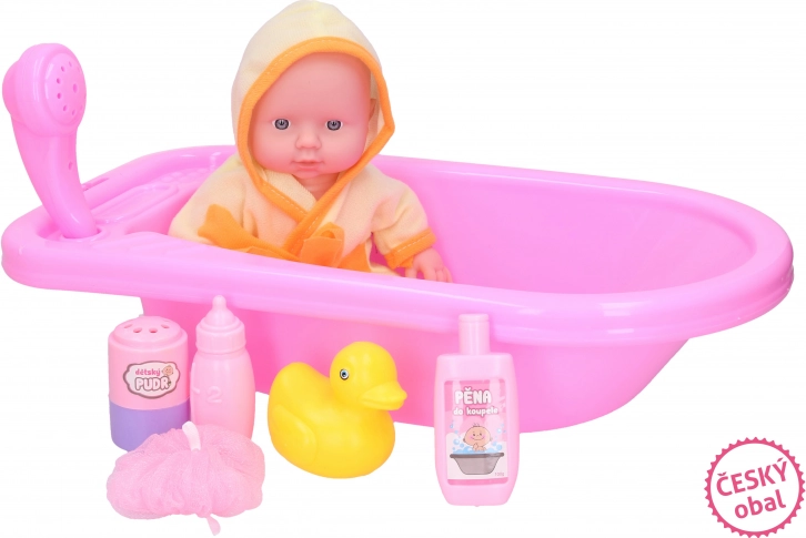 Das Set Baby mit Badewanne ist ideal für kleine Betreuerinnen. Das Set enthält ein Baby mit einer Größe von 24 cm und eine 40 cm lange Badewanne, perfekt für ein spaßiges Badeerlebnis.