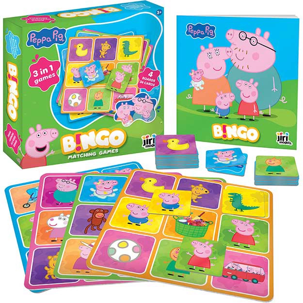 Erleben Sie Familienspaß mit den beliebten Figuren aus PEPPA WUTZ. Diese Kinderversion von Bingo ist so gestaltet, dass sie leicht verständlich, schnell und voller Entdeckerfreude ist. Dank der drei Spielweisen wird es Kindern nicht langweilig; sie trainieren Konzentration, Detailwahrnehmung und auch Spielstrategie.