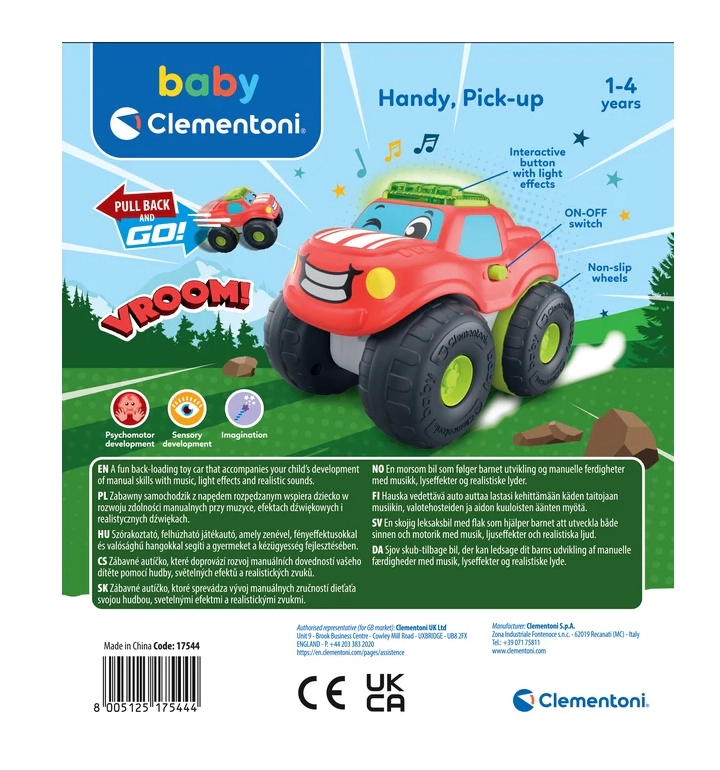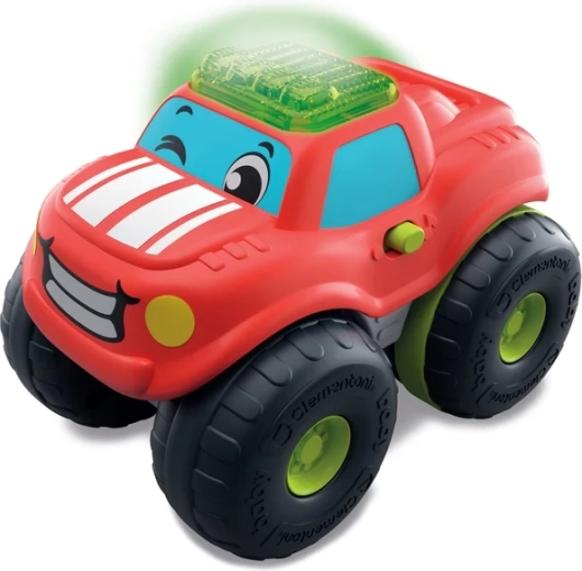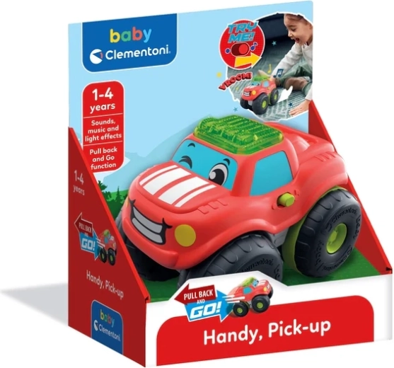 Dieser niedliche Pick-up mit lachender Front erfreut jeden kleinen Fahrer. Dank des mechanischen Pull-Back-Antriebs reicht es, das Auto nach hinten zu ziehen und loszulassen – es fährt nach vorn und weckt Freude an Bewegung sowie Neugier. Die Lichtleiste und die realistischen Geräusche sorgen für die richtige Stimmung beim Autospiel.