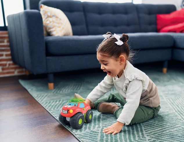 Große Räder, abgerundete Formen und eine stabile Ausführung. Ideal für kleine Kinderhände und den täglichen Spielspaß zu Hause und auf dem Teppich.