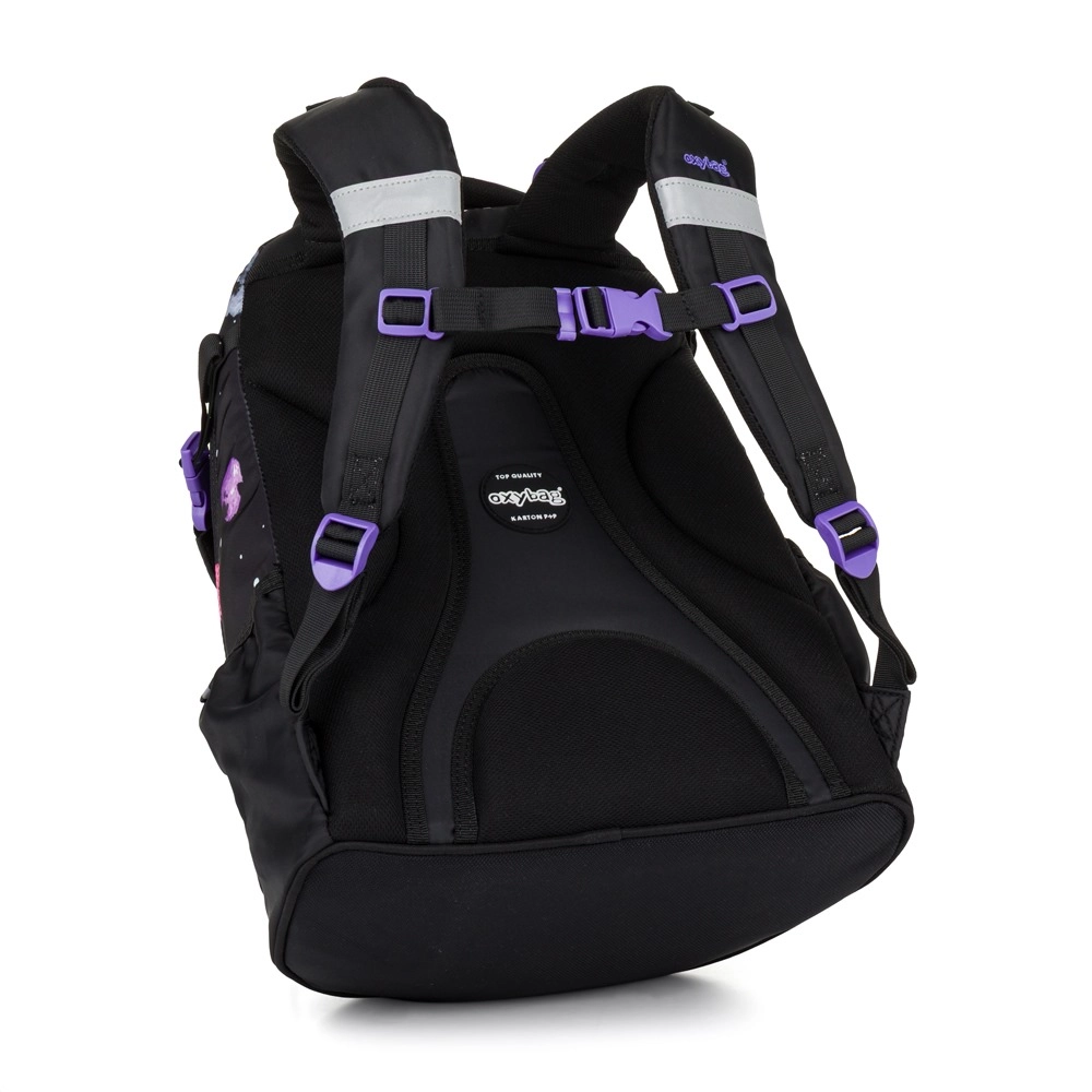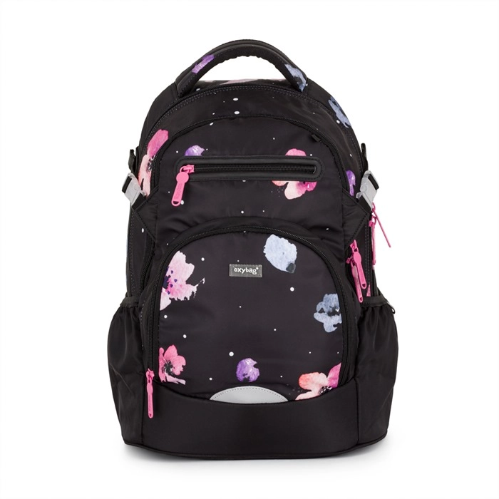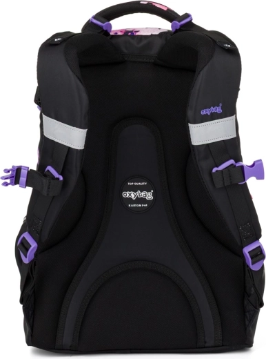 Der Schulrucksack OXY Ombre Flowers ist für den bequemen Alltagseinsatz ab der 3. Klasse konzipiert. Dank des ergonomischen Rückenpanels (Länge 43 cm) und der weich gepolsterten Schultergurte passt er sich hervorragend dem Kinderrücken an. Der verstellbare Brustgurt hält die Träger an Ort und Stelle, während der feste, stabile Boden ein Umkippen verhindert und den Inhalt schützt.
